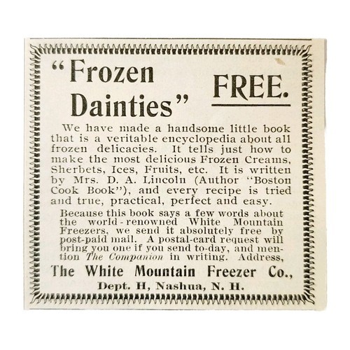 Frozen Dainties 1897 Advertisement Victorian White Mountain Freezer Co ADBN1A4
