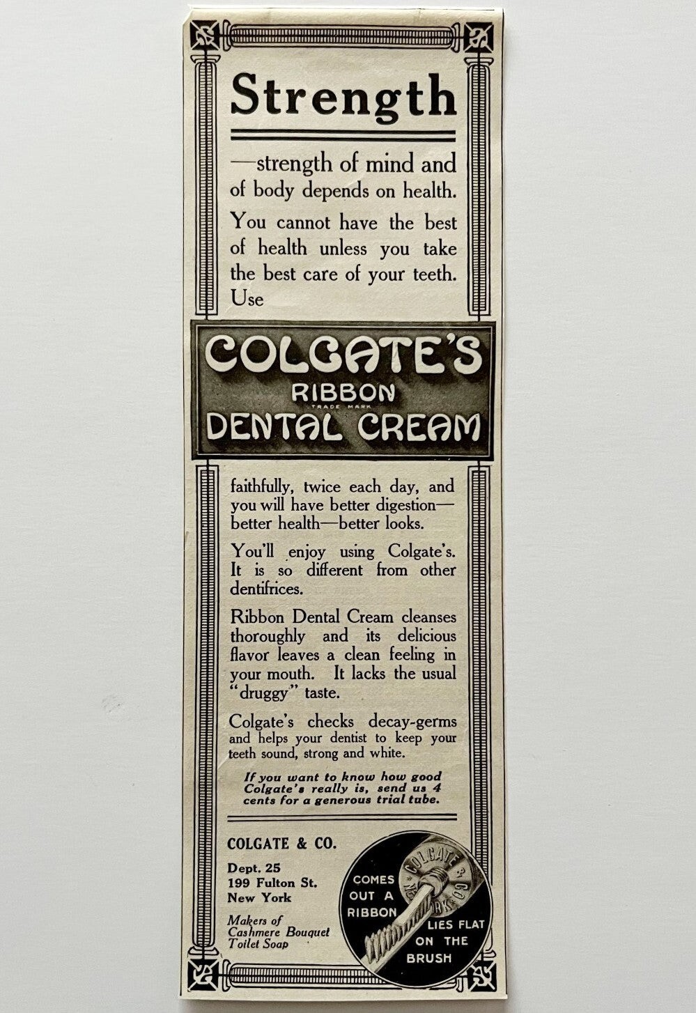 1914 Colgate Toothpaste Hygiene Ribbon Advertisement Dental Ephemera 7.25 x 2.5"