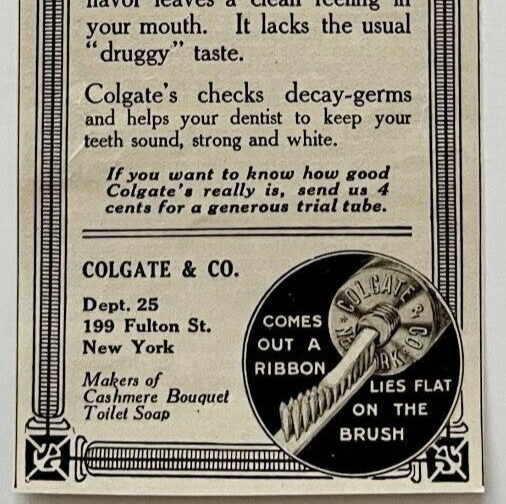 1914 Colgate Toothpaste Hygiene Ribbon Advertisement Dental Ephemera