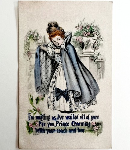 Victorian Greeting Card Hand Colored Postcard Prince Charming Romance PCBG11B