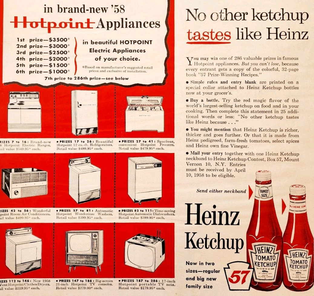 1958 Heinz Ketchup Hotpoint Contest and 46 similar items