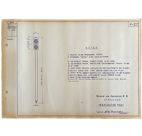 1966 Railroad Bangor Aroostook Reflector Post Blueprint K22 Trains DWDD12