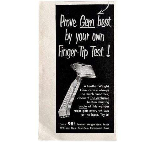 Gem Shaving Razor Blades Featherweight 1952 Advertisement Facial Hair Care DWEE9
