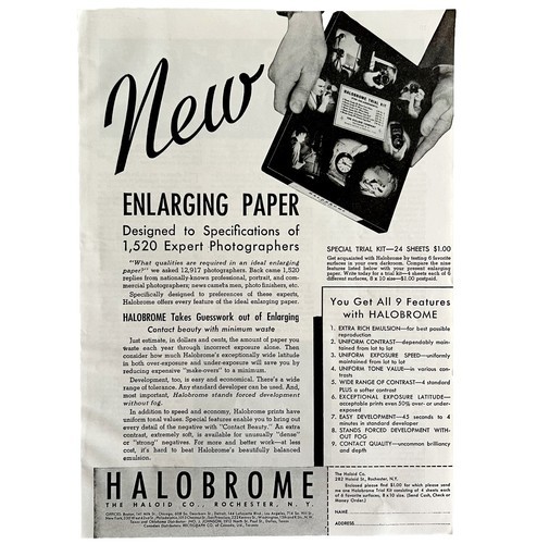 Haloid Co Halobrome Enlarging Paper 1939 Advertisement Photography DWKK10