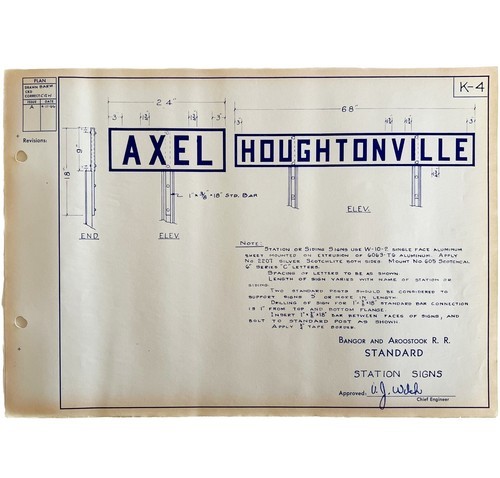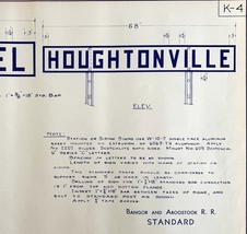 1966 Railroad Bangor Aroostook Houghtonville Station Sign Blueprint K4 DWDD12