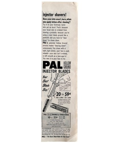 Pal Injector Shave Razors 1952 Advertisement and 41 similar items