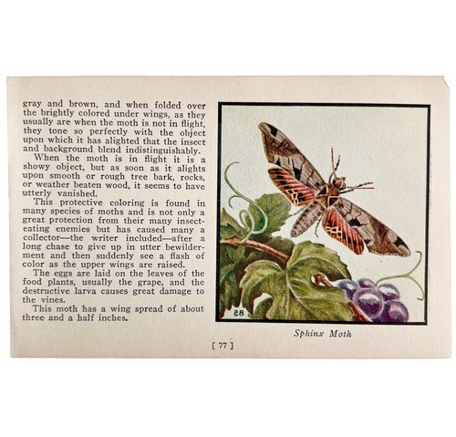 Sphinx Moth 1934 Butterflies America Of Antique Insect Art PCBG14A