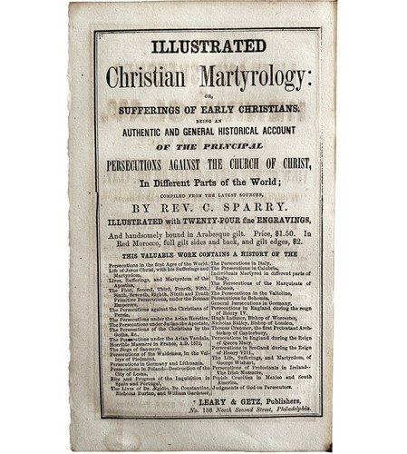 Leary And Getz Christian Martyrology Advertisement 1841 Victorian Books DWZ3B