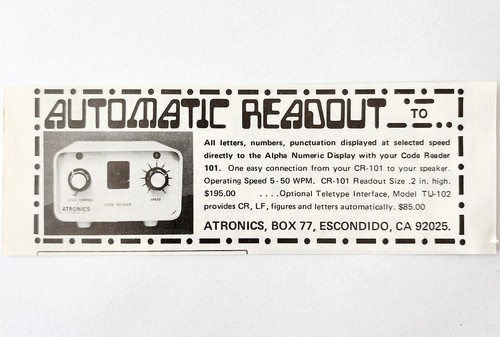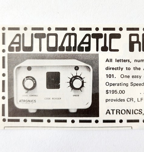 1975 Atronics Automatic Readout Code Reader Advertisement Electronics C82QST