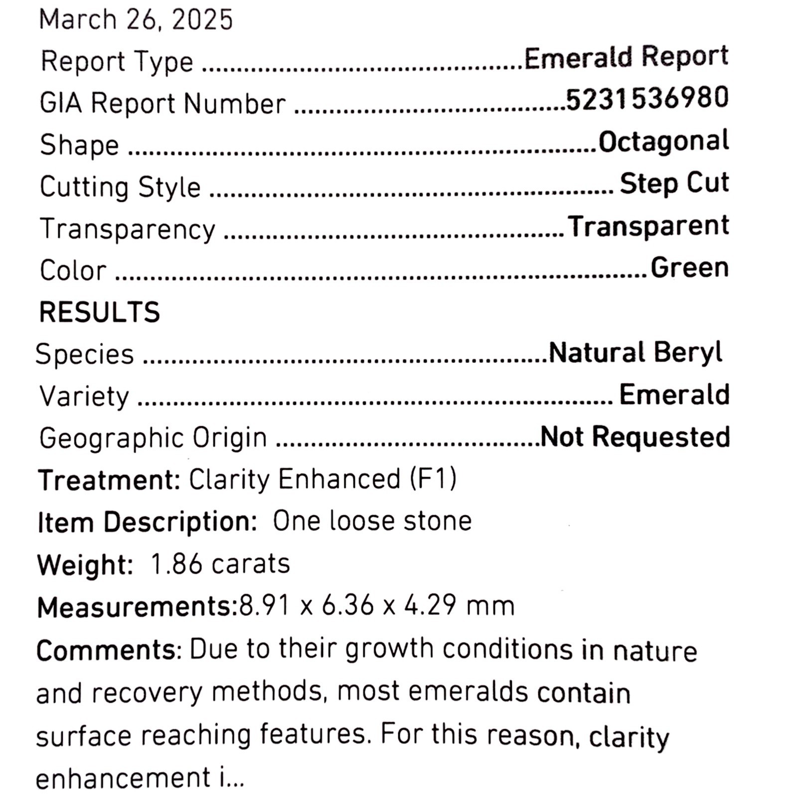 Platinum 3-Stone Ring 1.86 Carat Genuine Emerald w/ Diamonds GIA Report (#J7418)