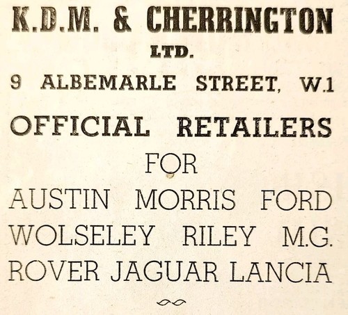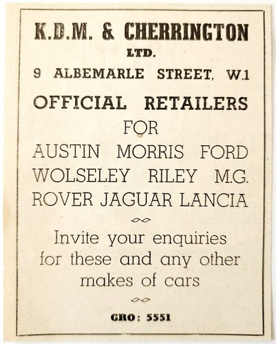 1954 KDM And Cherrington London Car Dealership Advertisement Automobilia E89G2
