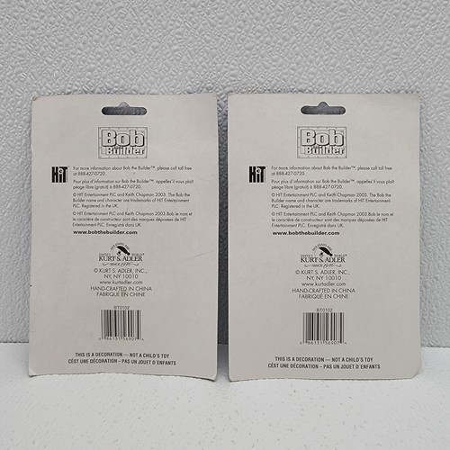 2003 Kurt Adler Bob The Builder Muck Roley Holiday Christmas Ornaments. Images show actual ornaments that will ship.