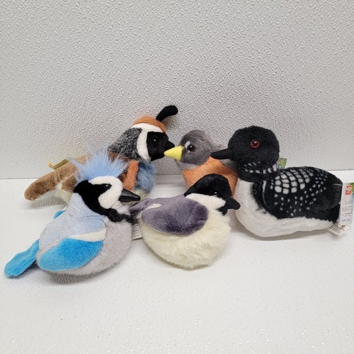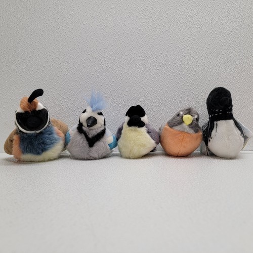 Lot of 5 Audubon Wild Republic Plush Stuffed Birds - Blue Jay, Chickadee, Robin. 3 of the birds still make noise, the other 2 do not. Images show actual set that will ship.