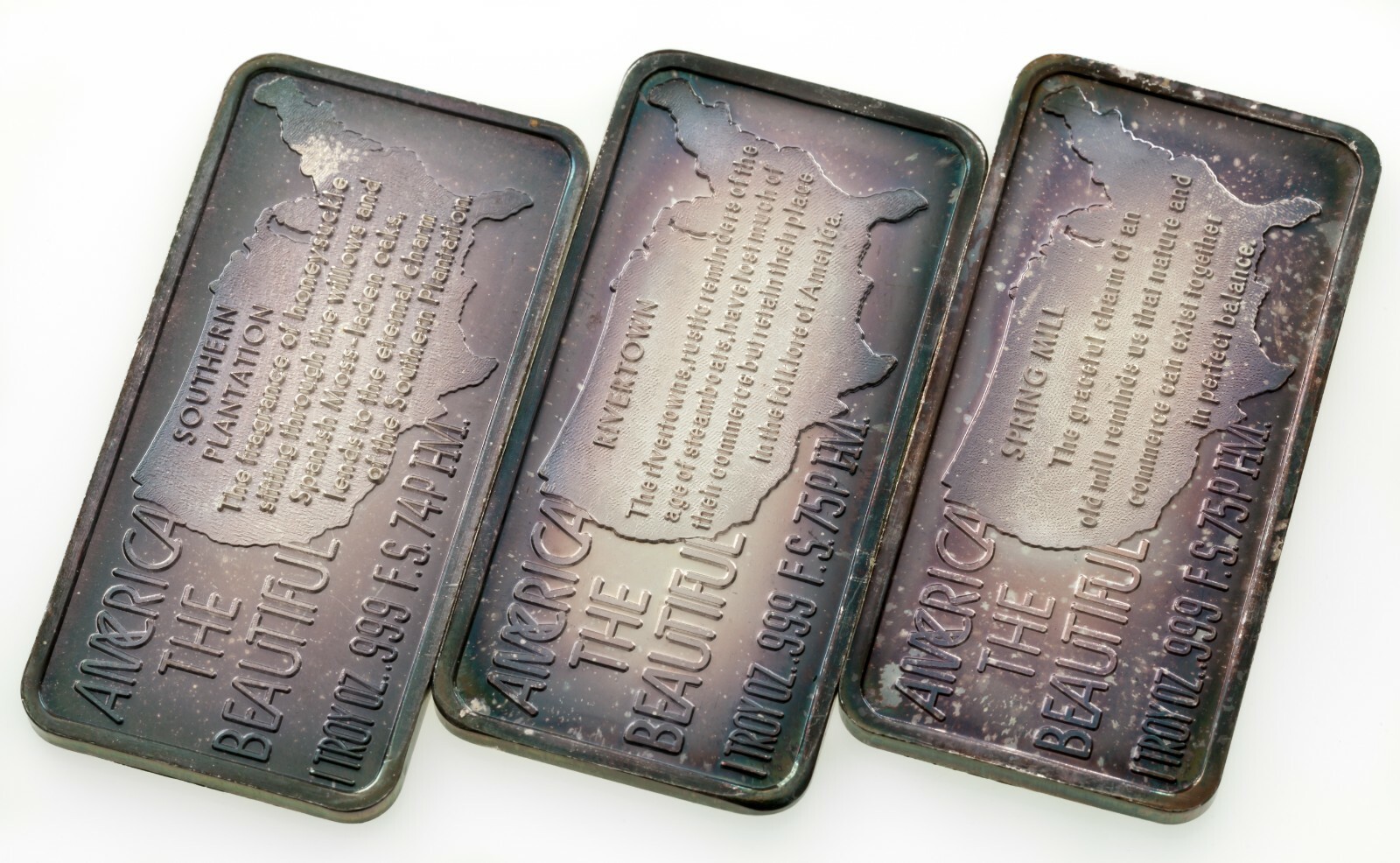 1974-75 Hamilton Mint America The Beautiful 1Oz Silver Art Bars Lotto Di 3 Bars