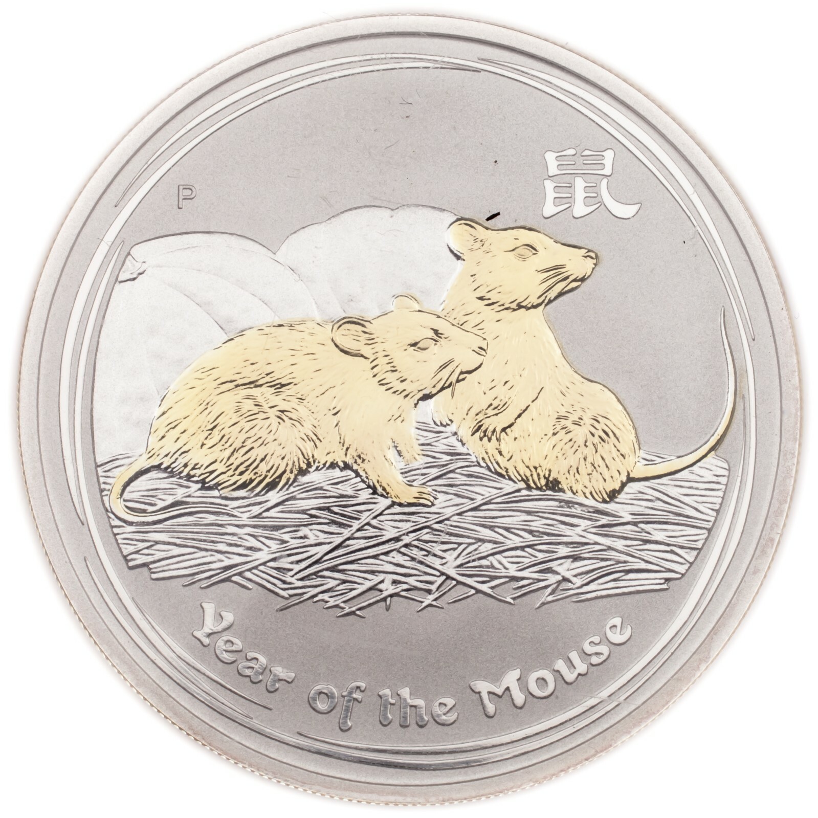 2008-P Gilt Australia S $ 1 Anno del topo 1 oz. Silver Round NGC MS-69