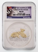2008-P Gilt Australia S$1 Anno Del Topo 1 Oz. Moneta D'Argento NGC MS-69