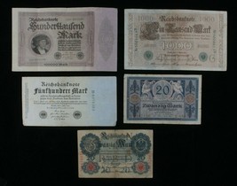1910-1923 Allemagne 5-Notes Kit 20 Mark À 100,000 Mark Empire & Weimar