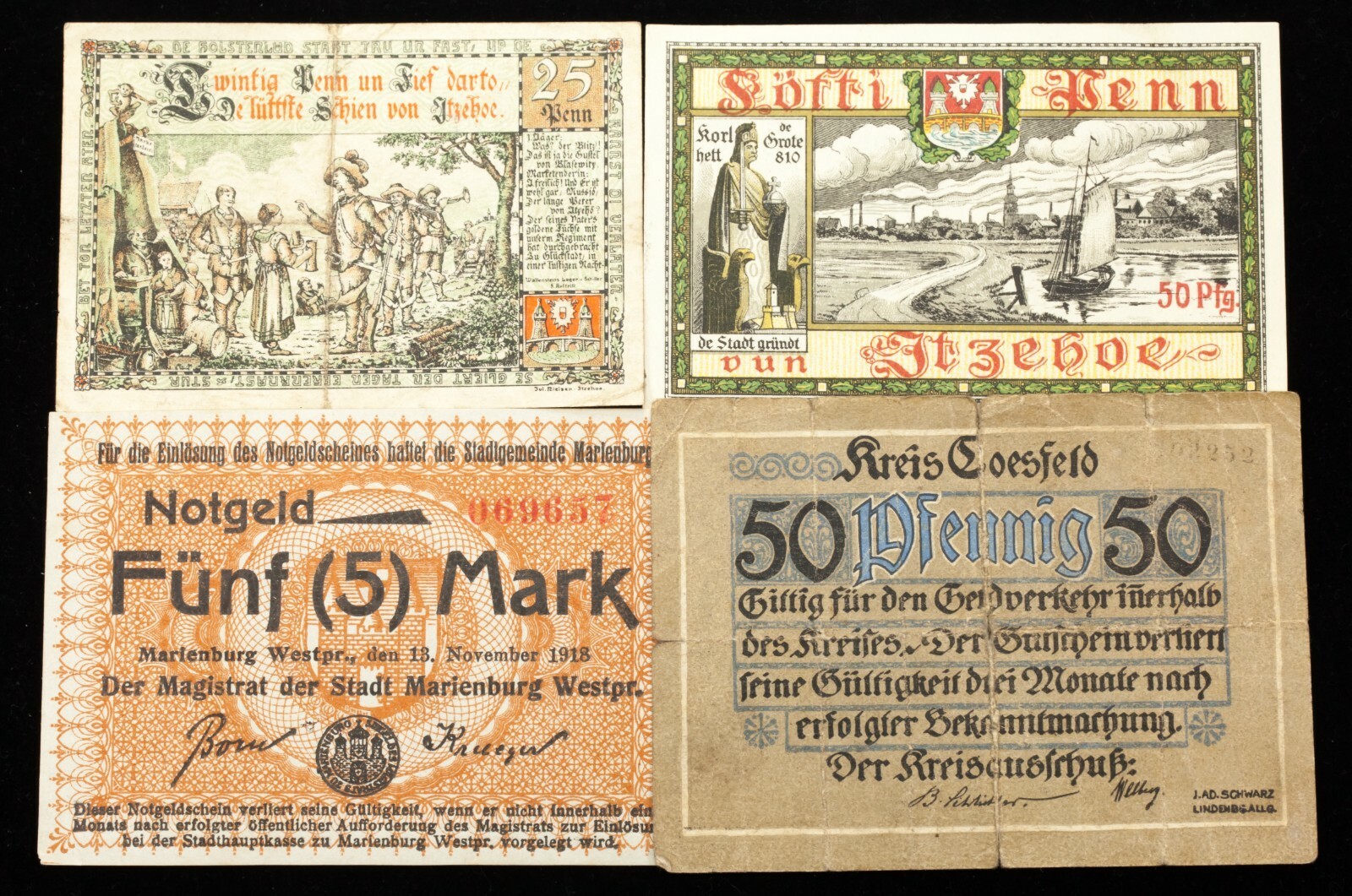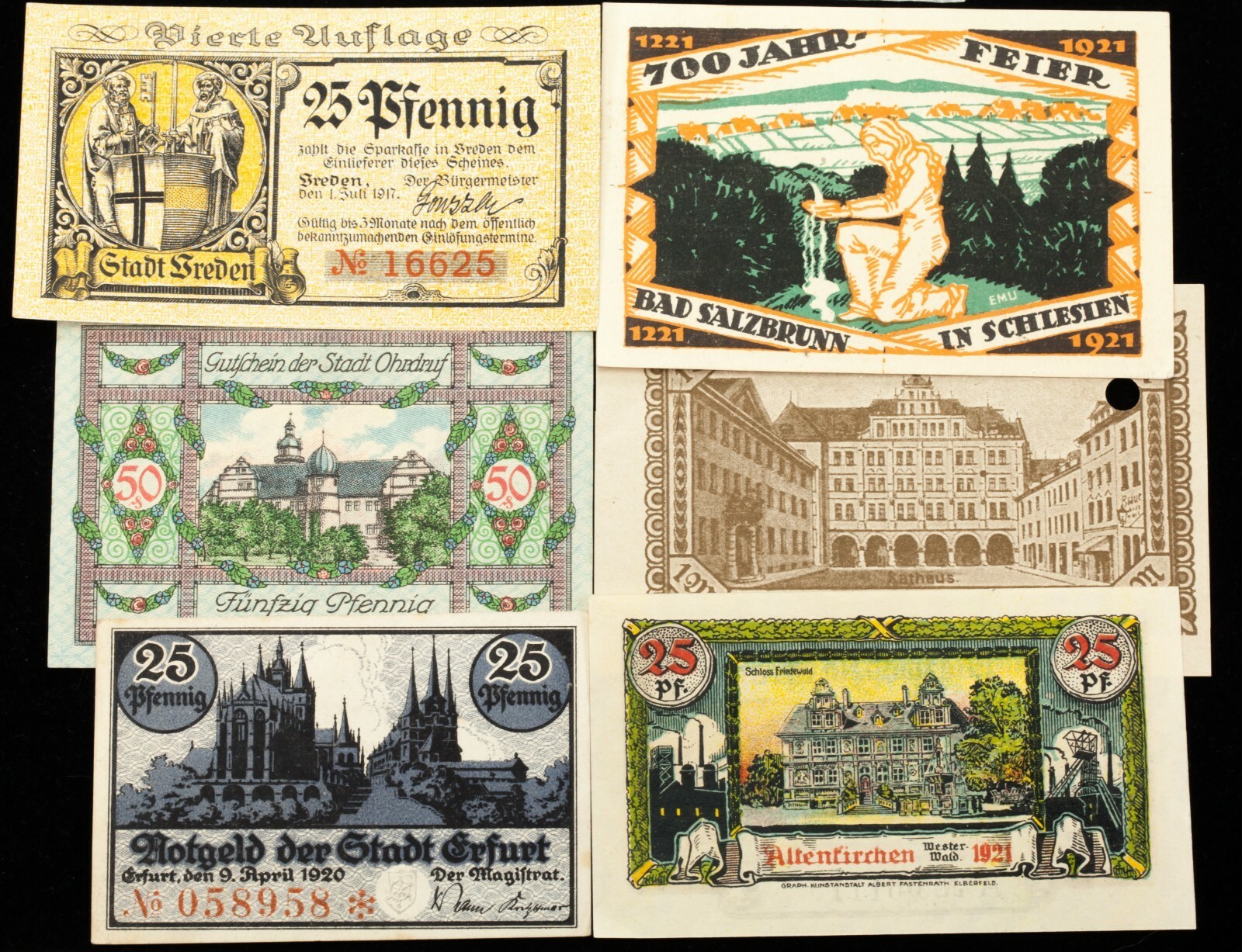 Issued by: Altenkirchen, Aschersleben, Coesfeld, Daber, Elbing, Emden, Erfurt, Freienwalde, Glatz, Gorlitz, Itzehoe, Koln, Kulmbach, Limburg, Marienburg, Ohrdruf, Pyrmont, Quedlinburg-Land, Salzbrunn, Sankt Wendel, Schleswig, Stadtlengsfeld, Vreden, Warin