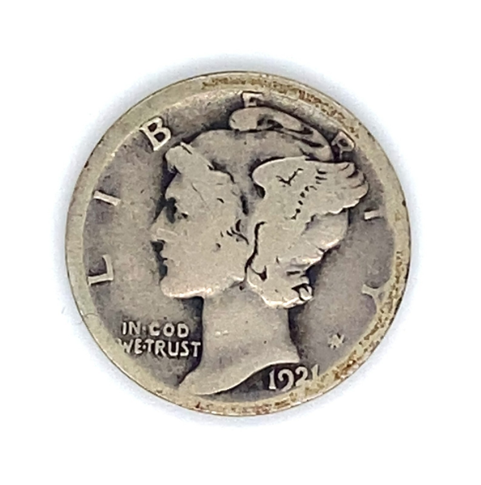 Dime Mercury 10C De 1921 En Bon État Avec Couleur Naturelle Et Date À 4 Chiffres