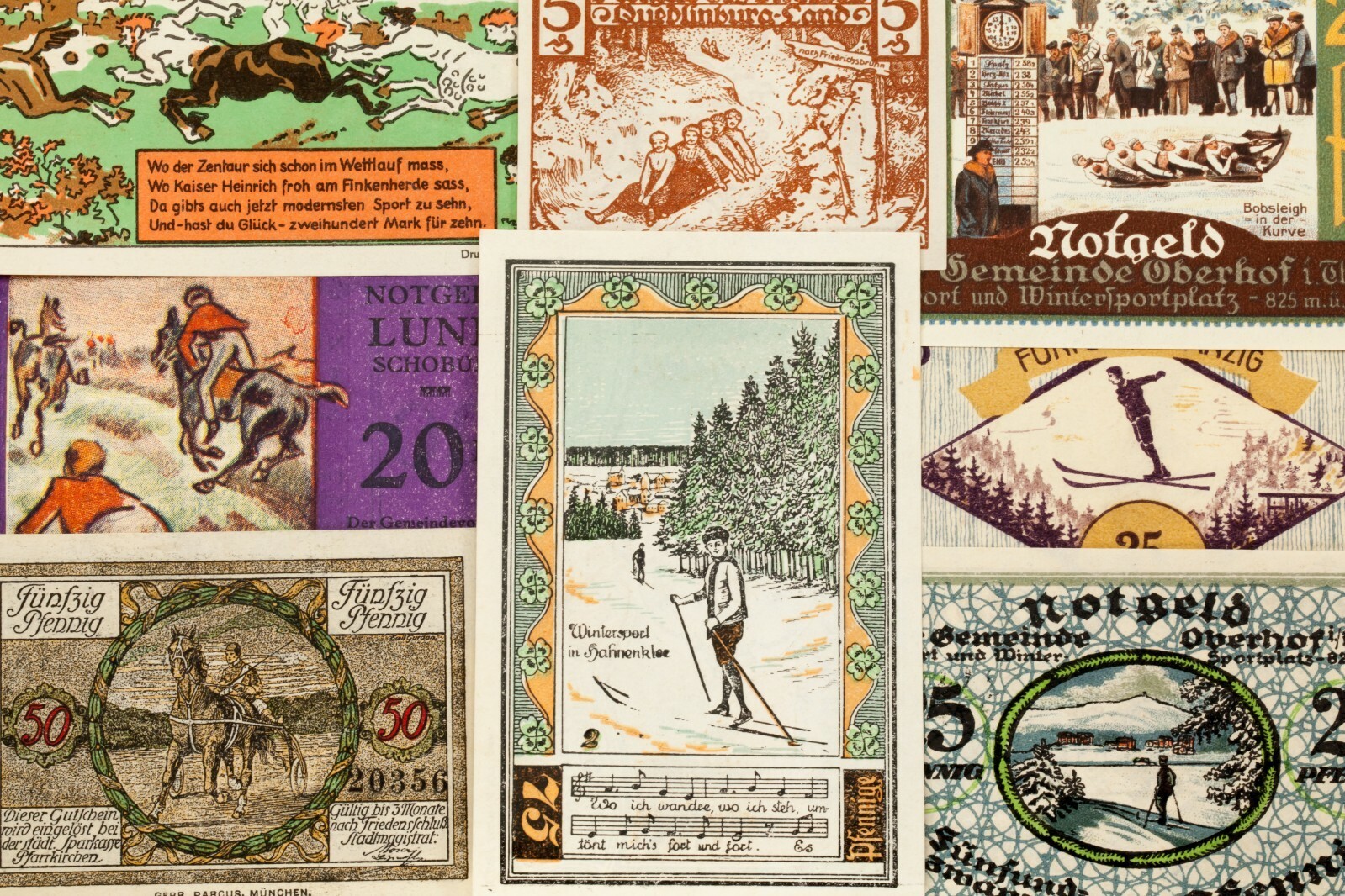 1920's Germania Notgeld Soldi 17pc SPORTS - Jgelshieb,Oberhof,Pfarrkirchen