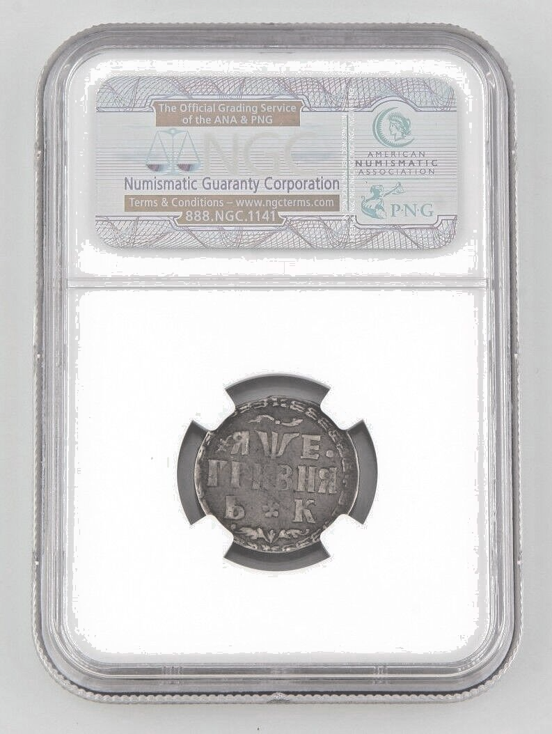 (1705) BK Russia 10 Kopek Silver Coin VF-30 NGC Slabed Peter the Great KM#121
