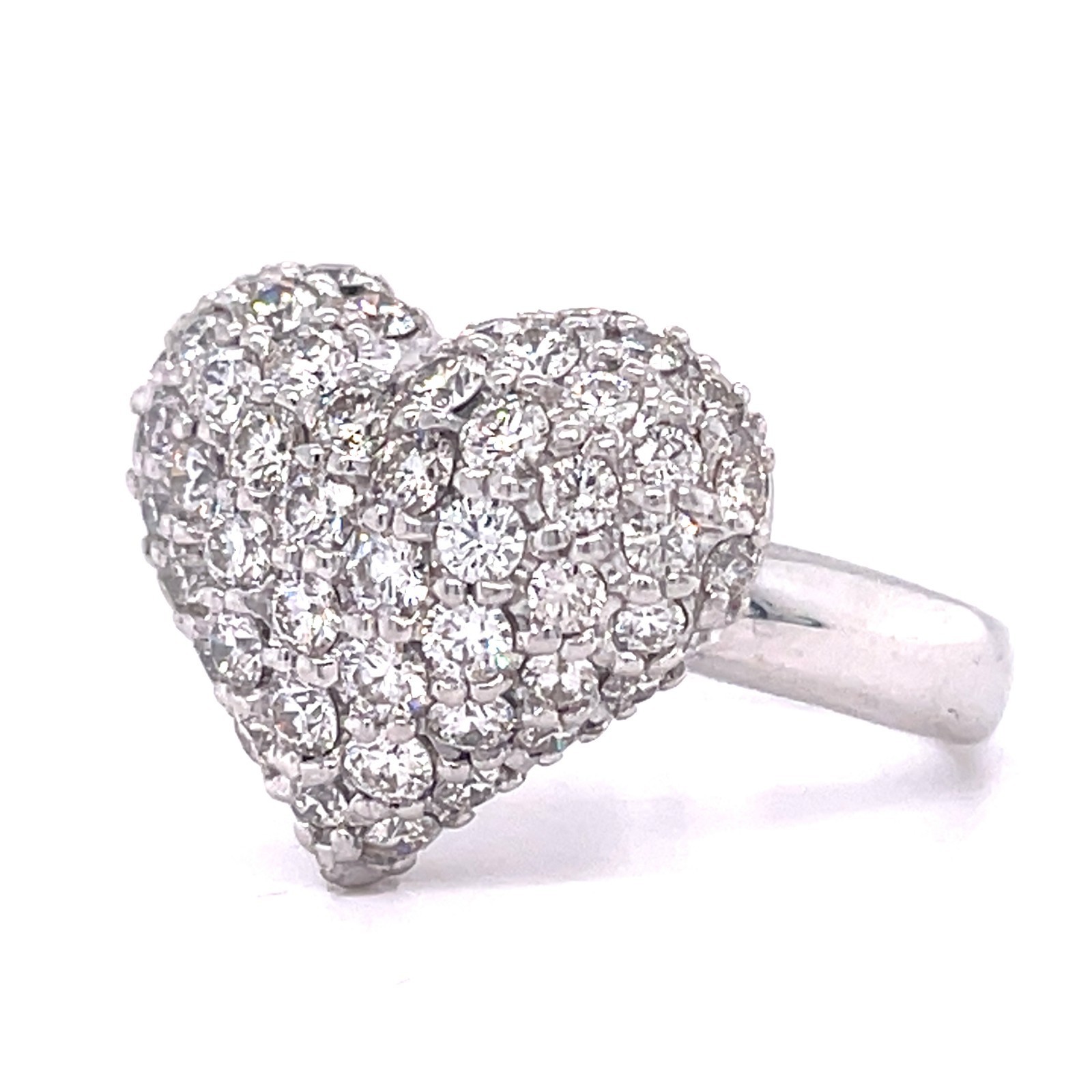 Anello Bombe A Cuore In Oro Bianco 18K Con Diamante Pave-set Da 3,95 Ct Taglia 7