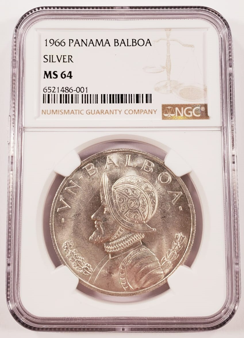 1966 Silver Panama Balboa calificado por NGC como MS-64