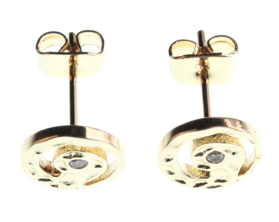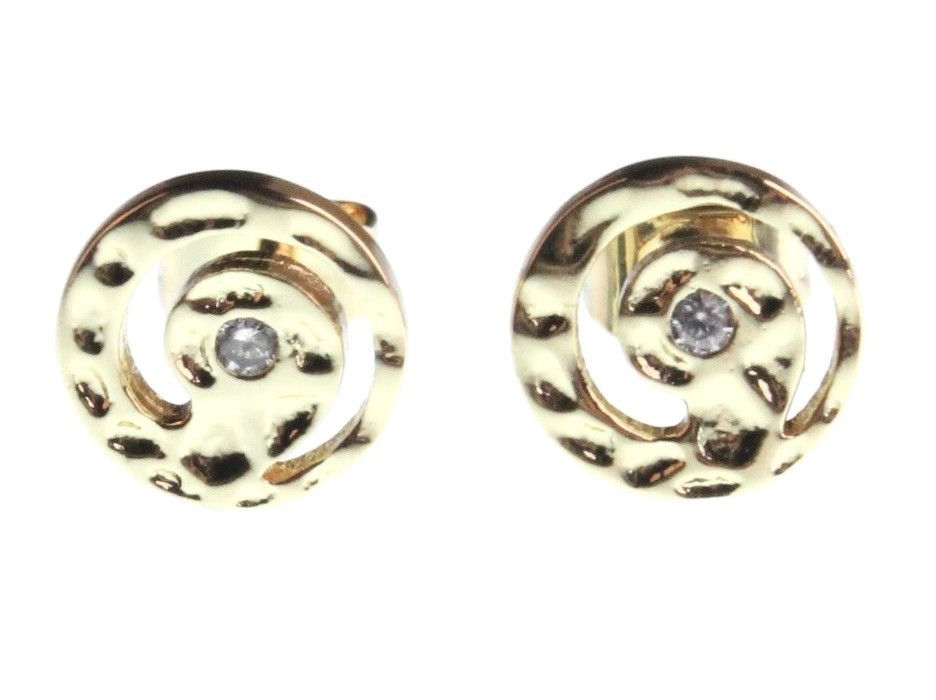 Esto es para un nuevo par de pendientes de semental de poste de remolino de circonía cúbica de oro chapado en kevia 18K Los remolinos miden 8 mm de diametro y se configuran con un cristal CZ en el medio.