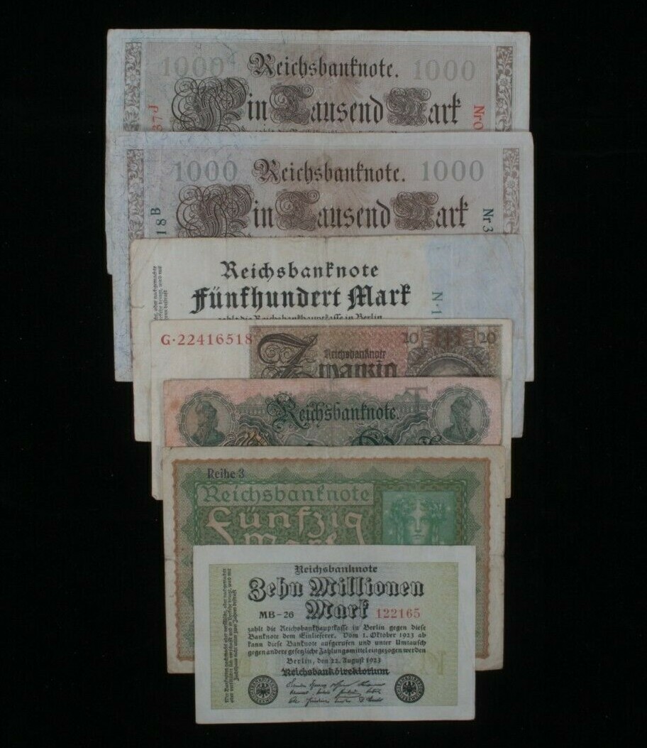 1910-1929 Alemania 7-Notas set // Empire 50-1000 Mark ??Weimar 20-10000000 Mark