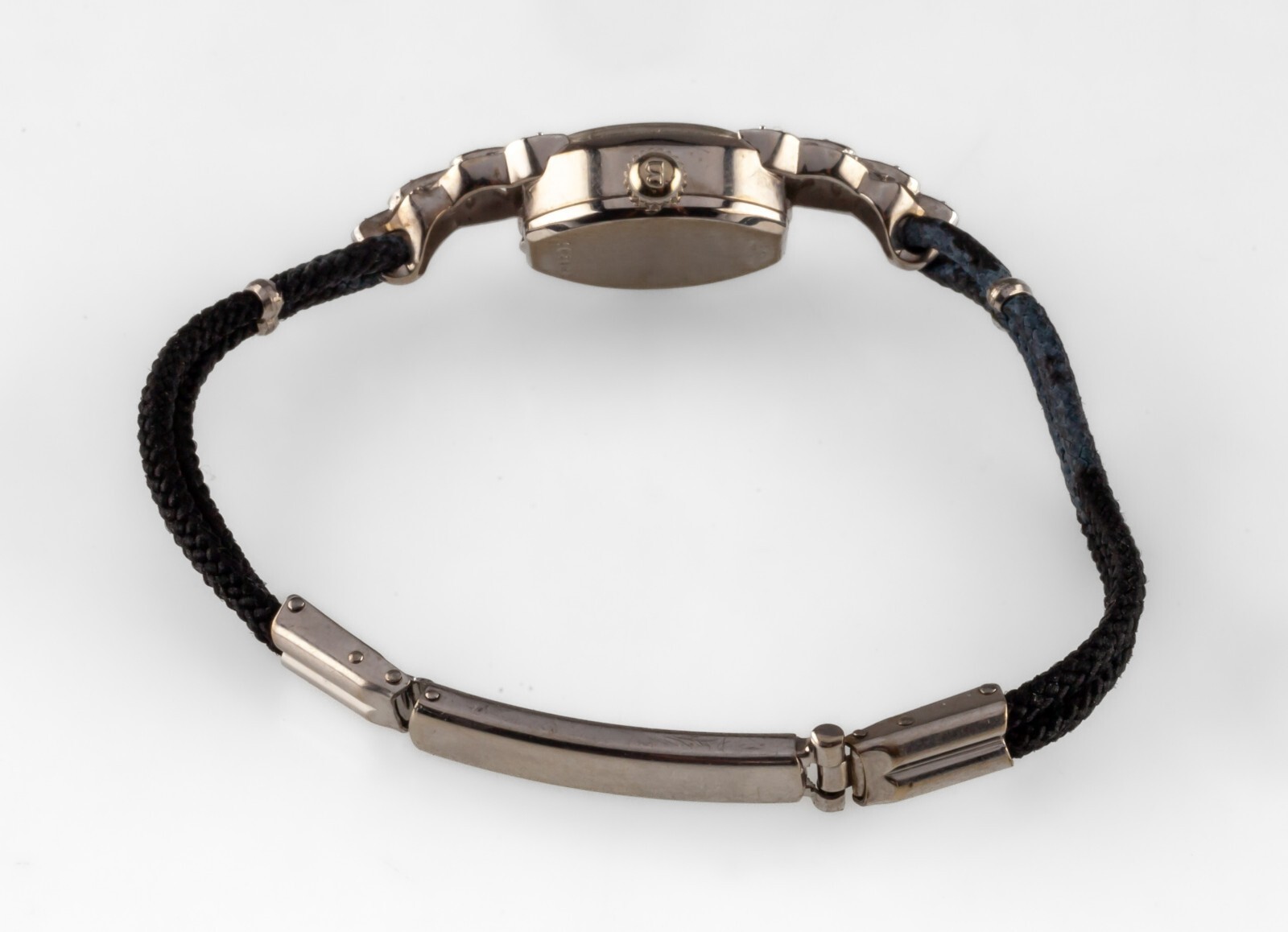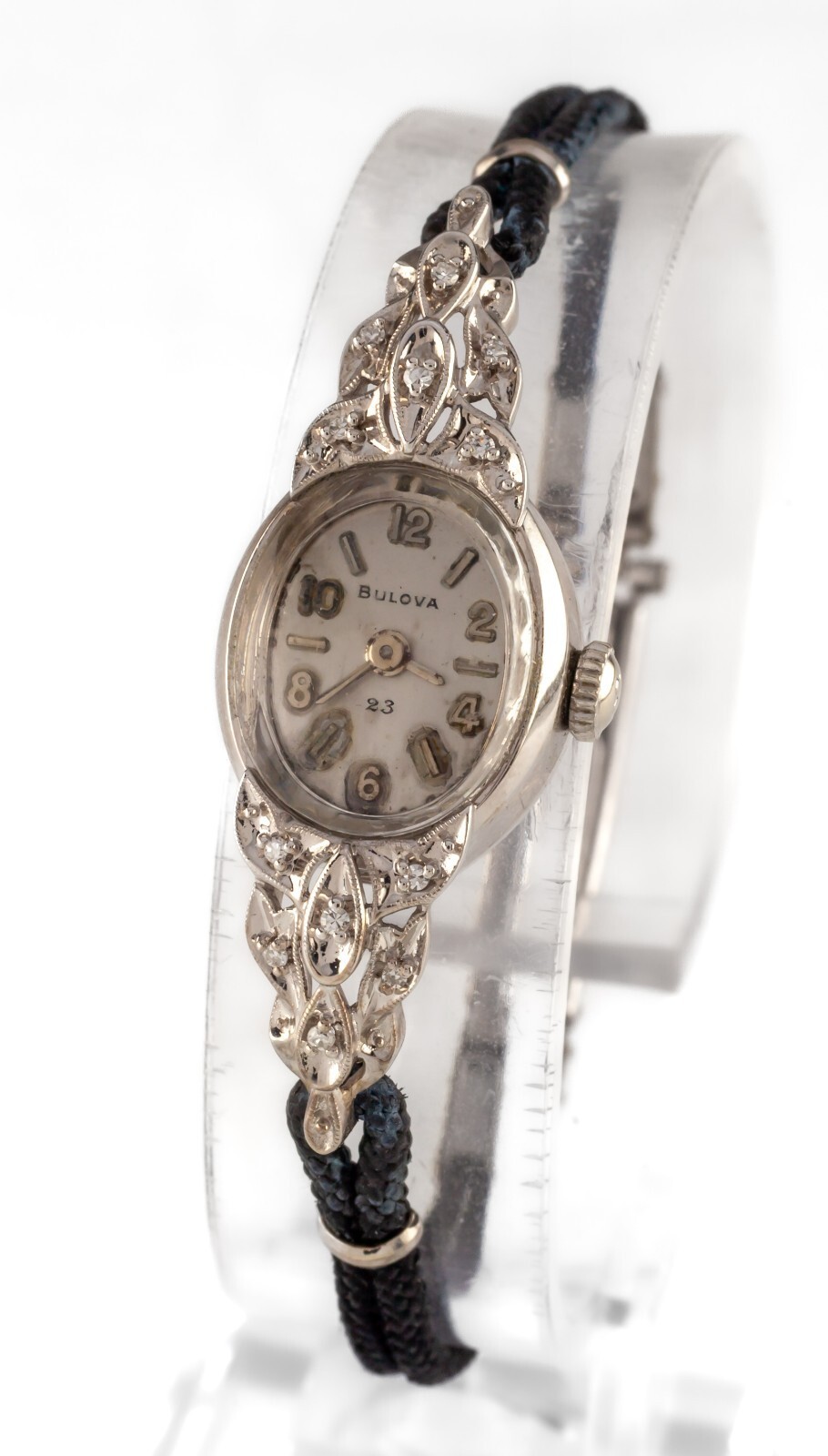 Bulova Mujer Vintage 14k Oro Blanco Correa Manual Reloj W/ Gris Cordon Banda
