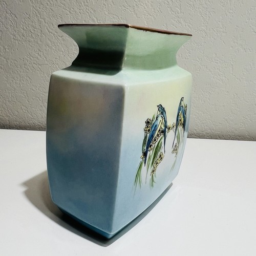 vintage P.S.A.A Bavaria 1127 schonwald porcelain vase. Light blue/green with birds and flowers.