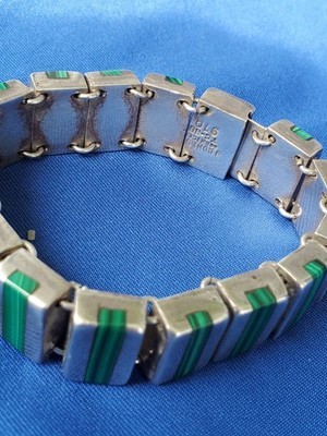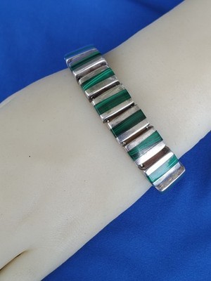 J Gomes DESIGNER SIGNED Sterling Silver 970 Malachite Texaco Bracelet 6.5 INCH