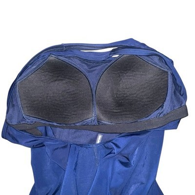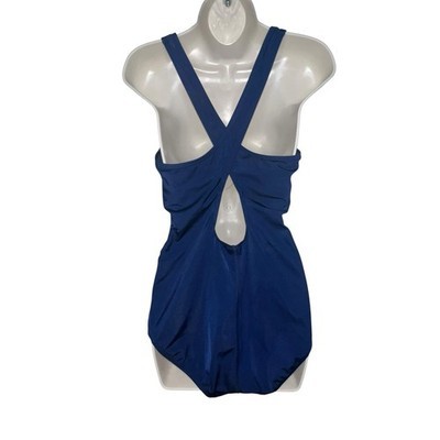 Lands' End Size 14 One Piece Swimsuit Solid Color Square Neck Criss Cross Blue