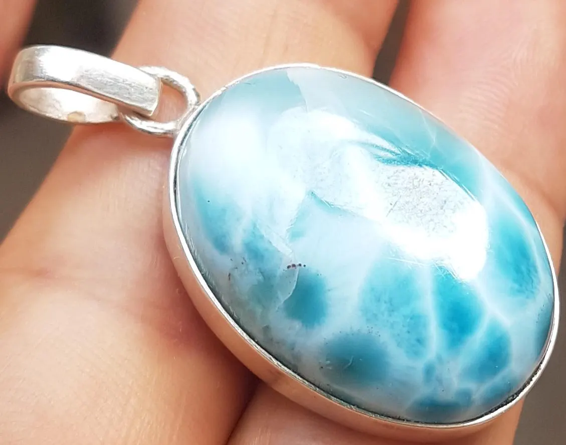 This pendant is handmade with Natural LARIMAR GEMSTONE and 925 STERLING SILVER