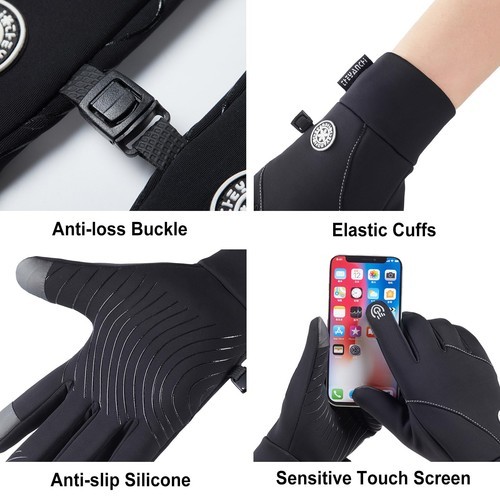 Well Made Winter Gloves: Winter gloves are full-finger design, double-layer warmth, windproof and waterproof (do not immerse gloves in water); winter gloves are made of encrypted material on the outside and soft and cozy crystal fleece on the inside; anti-lost design; perfect fit for hands; elasticized elastic cuff locks in the hand heat; new generation of highly sensitive touch screen materials