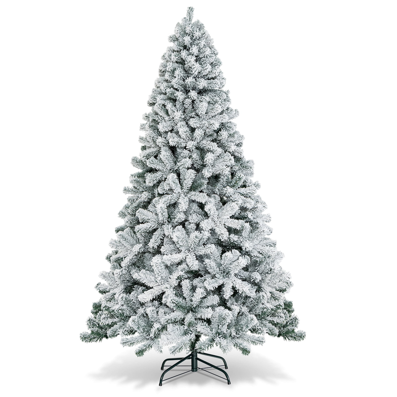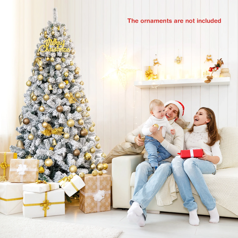 Dreamy Snowy Decoration Tree: Almost all branches? surfaces are delicately covered with white flocking, as if it was a snow-capped living tree in the cold winter. Plus, the 7.5ft Christmas tree contains 1010 lush branch tips to carve a vibrant appearance, inspiring your passion for the coming new year. New PVC with Long Service Life: Different from cheap material, the artificial Christmas tree is made of brand new PVC which features impressive fire resistance, fade resistance and allergic resistance. Thus, it is definitely a safe choice for family use and can maintain a nearly new look to be reused for several years. Convenient Hinged Structure: Owing to the advanced hinged mechanism, the holiday decoration tree offers the auto dropping of branches, which means you don?t have to manually organize the position of each branch. It only requires final trimming to match your ideal tree shape by hands. Stable Status Separable Design: The package also includes a metal stand, which is designed to be foldable for easy setup, to stably support the entire Christmas tree. Meanwhile, its protective pads will help to eliminate scratches on the floor. Finally, the complete tree can be easily taken down into 4 sections and stored somewhere. Perfect Messenger for Your Wishes: Don?t worry about finding the appropriate decoration for the Christmas party. The festival celebration tree only takes up a corner space but serves as a brilliant presence and brings a loving atmosphere. By the way, you can hang your own ornaments to better fit the party?s theme.