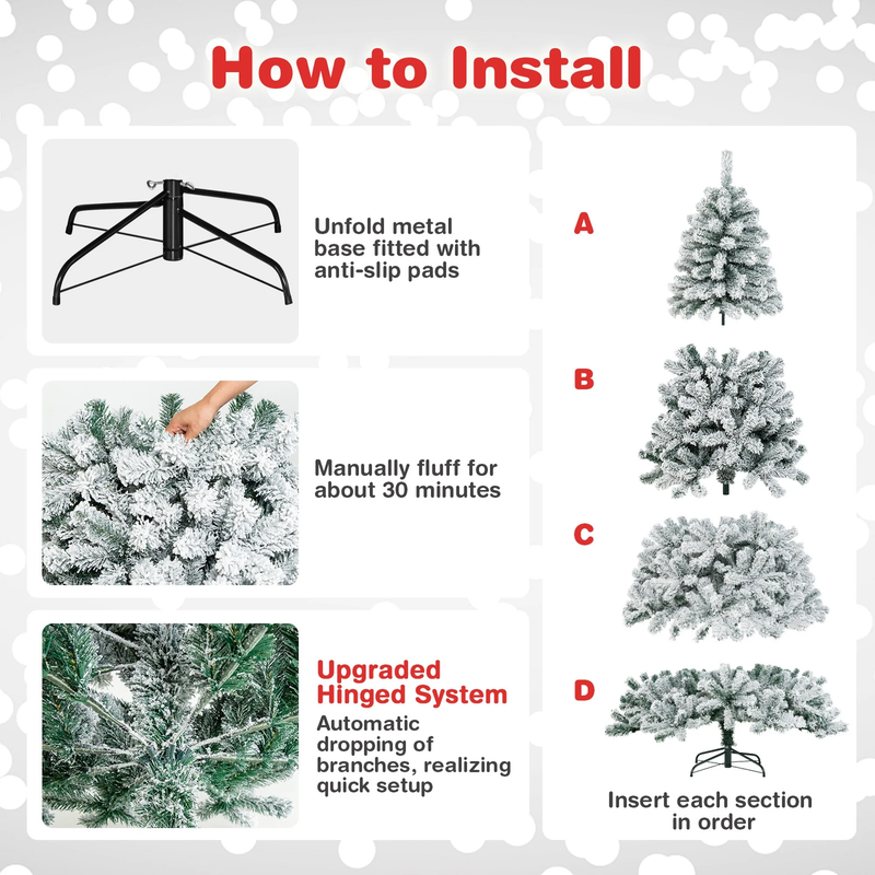 7.5Ft Snow Flocked Hinged Christmas Tree and 20 similar items