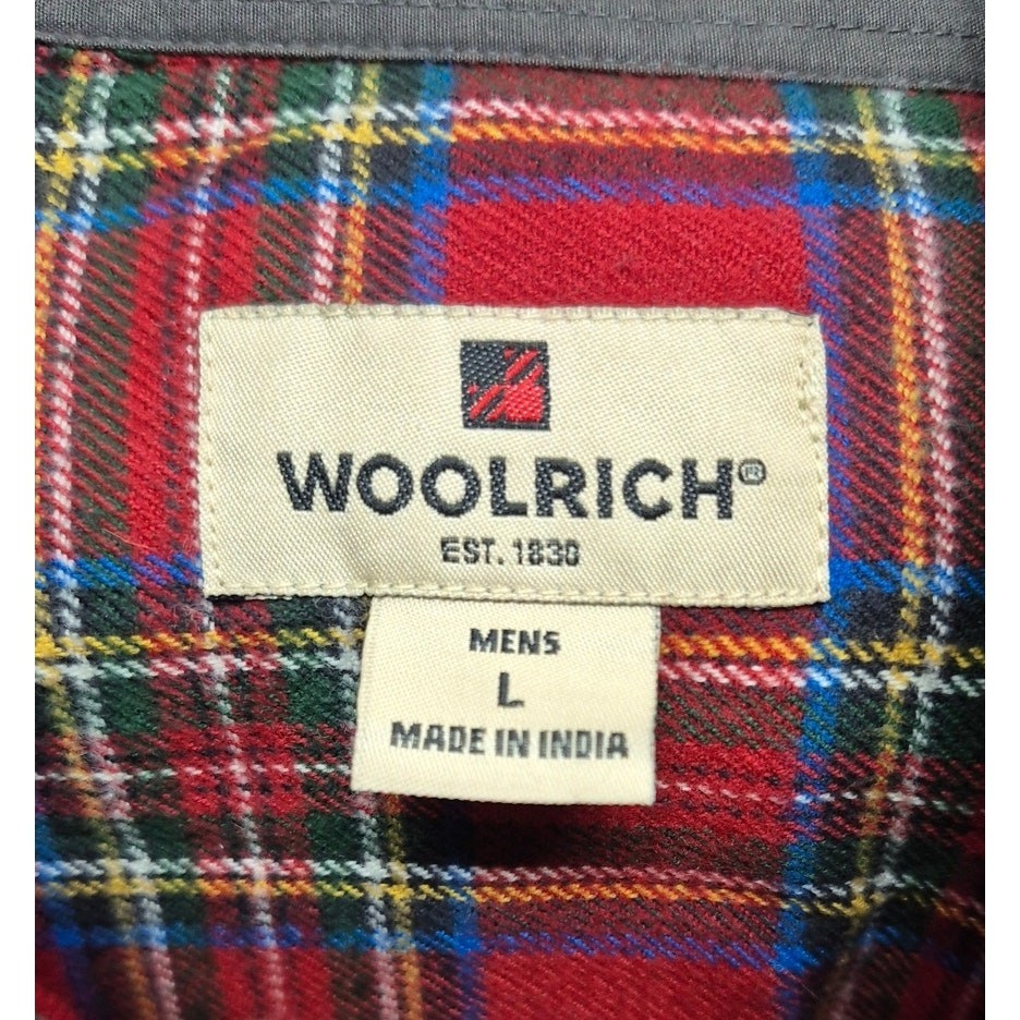 Vtg Woolrich Red Plaid 100% Cotton Flannel Lined Collar Sz L Mens in very good condition.