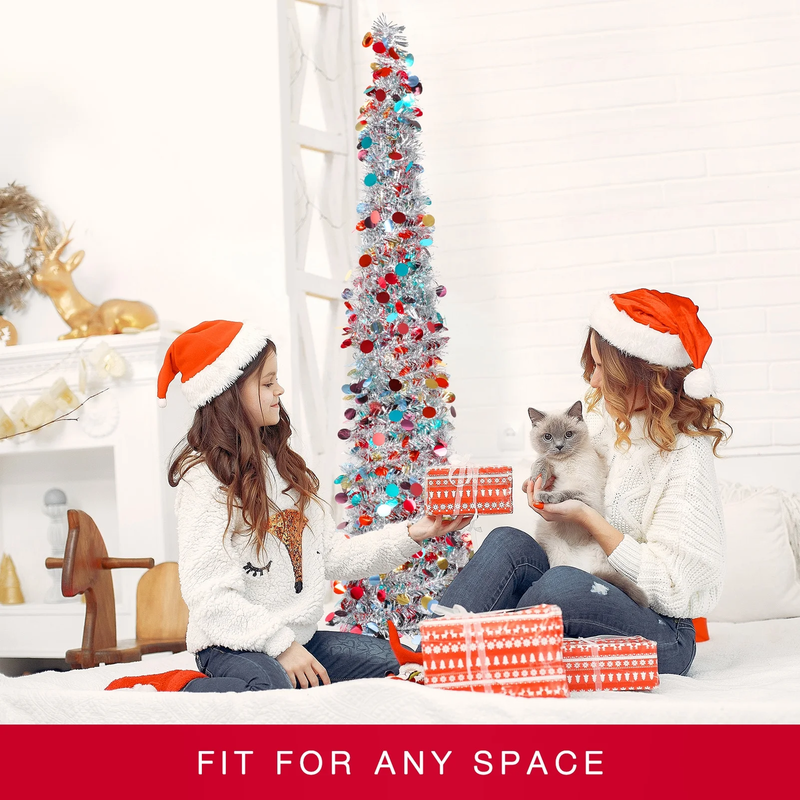 5Ft Pop up Tree Christmas Tree,Color Artificial Pencil Tinsel Xmas Trees for Chr
