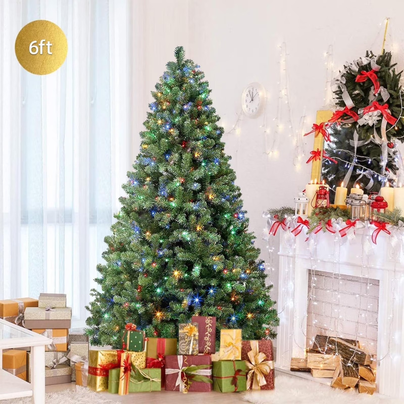 6.5Ft Pre-Lit Premium Artificial Hinged Christmas Tree W/ Remote Control, Timer and Warm White Color LED Changing Lights