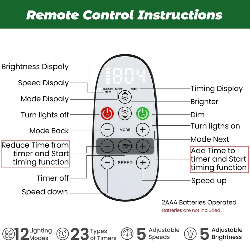 Alupssuc pre-lit premium artificial hinged Christmas tree w/ remote control. Pre-lit with 180/260/340/480/620 warm white color lights to save your time. 23 kind of timer + 5 levels of brightness + 5 levels of speeds + 12 lighting modes. Fully fluff branches provide natural appearance w/ 420/640/960/1380/2350 tips. Durable metal hinges, flame-retardant PVC branches and sturdy metal base. Just 3 steps for easy installation and dismantling. No tools needed. Easily assembled with the included instruction. Features extra-sturdy top branch for a tree topper. Supports you to DIY with Christmas Garlands, and any other decorations you like. It operated by 2AAA battery. (Note: batteries are not included.)