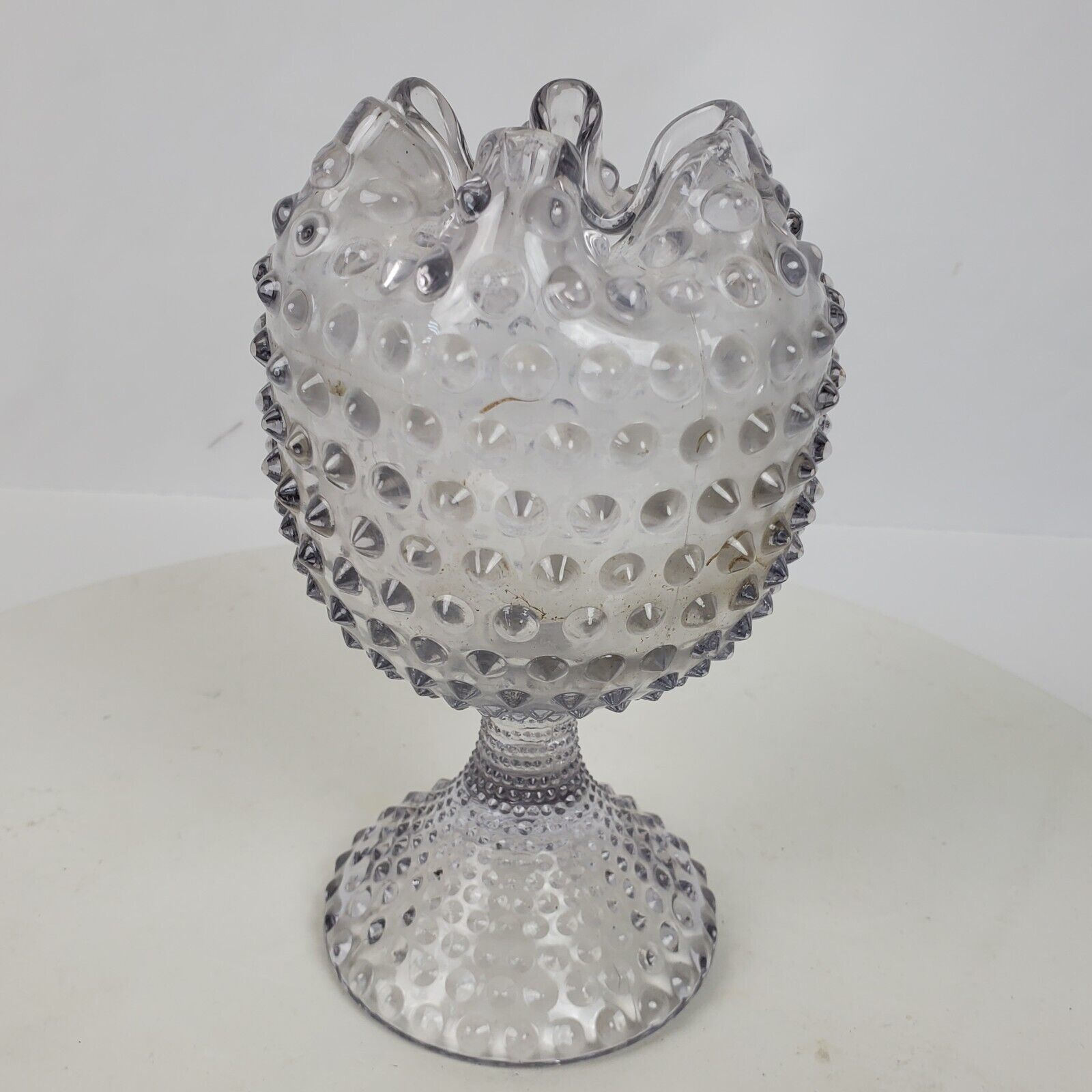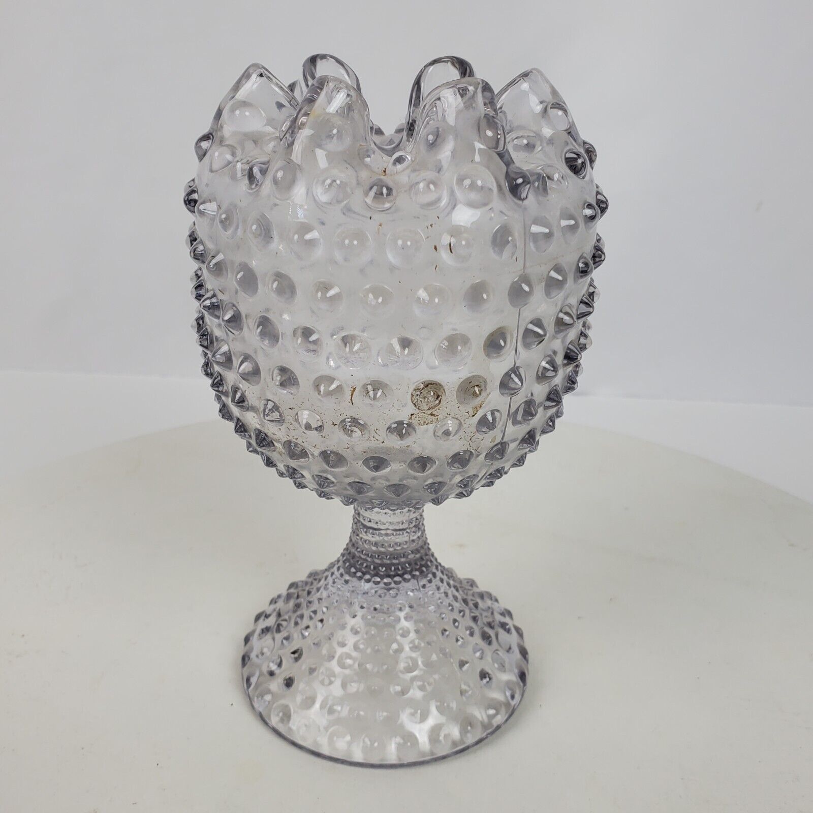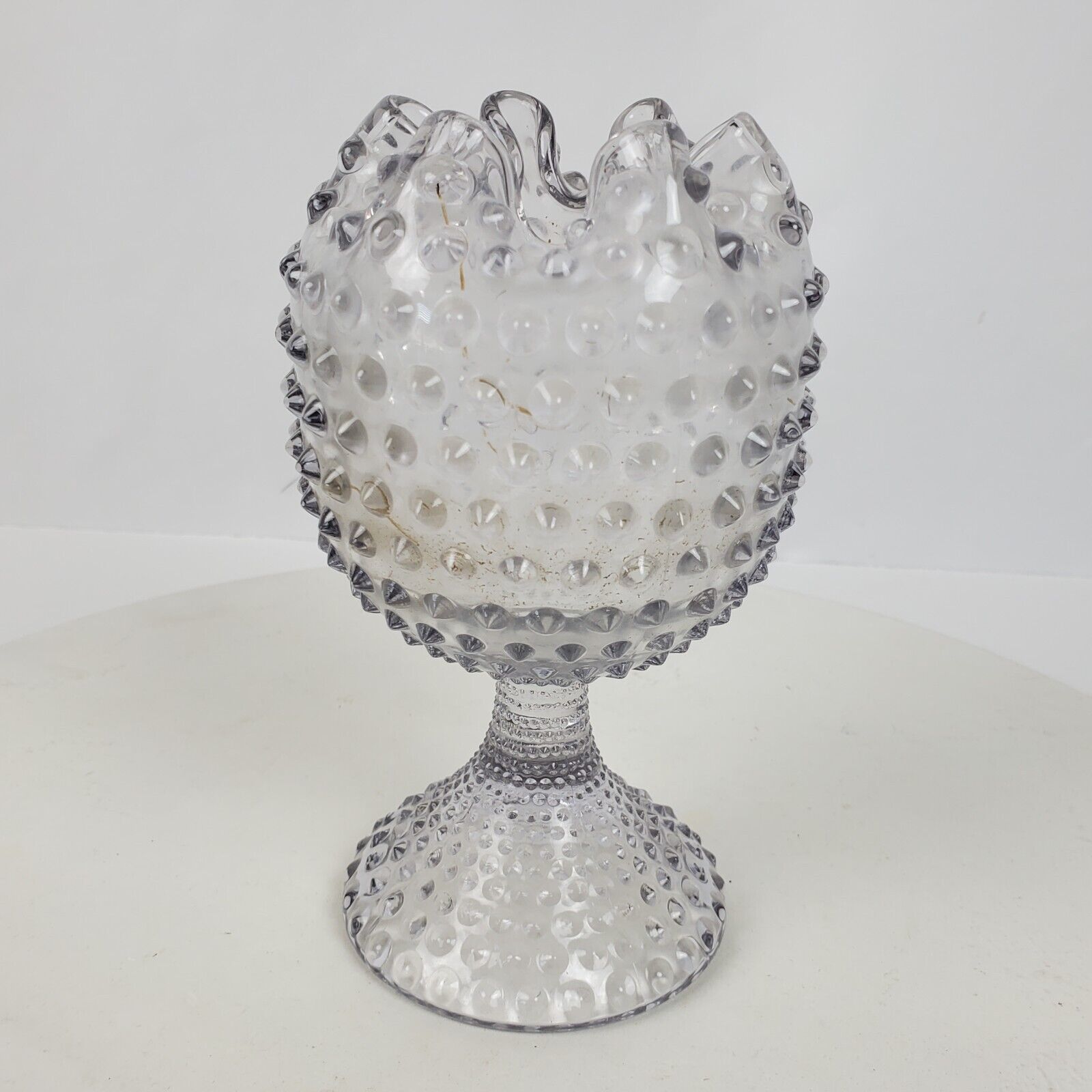 Vintage Duncan Miller Opalescent Hobnail Ball Bowl Vase Ruffled Edge 6.5"