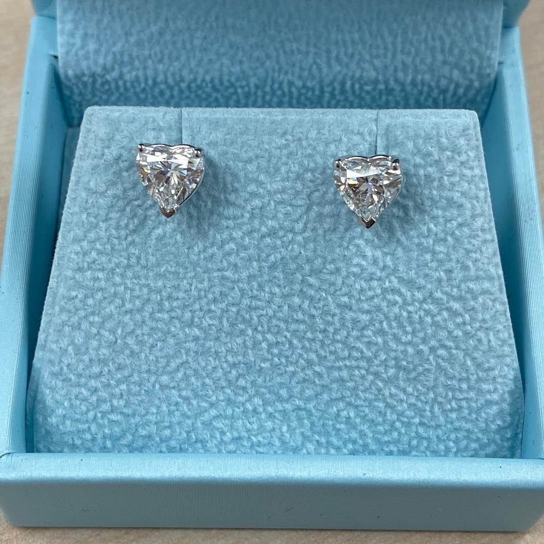 Heart Brilliant Cut 2.02 TCW IGI Lab Grown Diamond Stud Earrings 14k White Gold