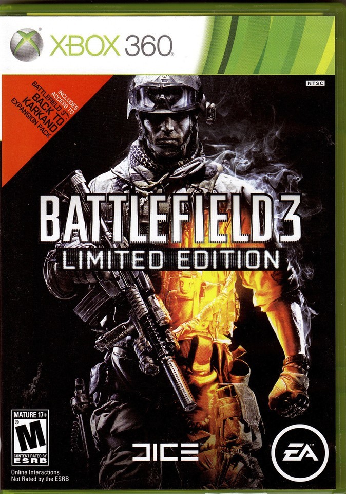 XBOX 360 BATTLEFIELD 3 LIMITED EDITION VIDEO GAME CASE MANUAL ONLINE PASS CODE MINT MICROSOFT TWO DISKS