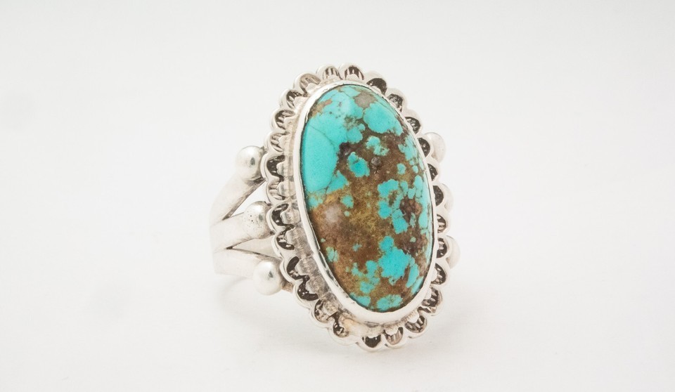 VINTAGE OLD NATIVE AMERICAN NAVAJO BLUE TURQUOISE RING STERLING SILVER SIZE 6.5