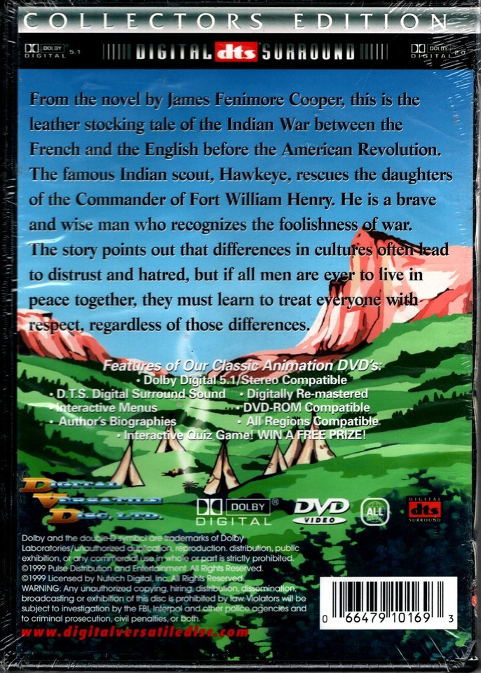 SEALED NEW THE LAST OF THE MOHICANS DVD 2000 COLLECTOR’S CHILDREN ANIMATION