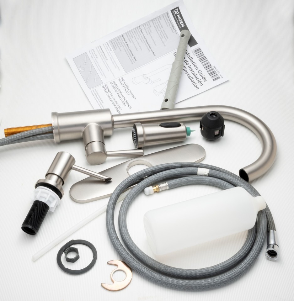 MOEN INDI STAINLESS 1-HANDLE HIGH ARC PULLDOWN KITCHEN FAUCET COMPLETE NICE!
