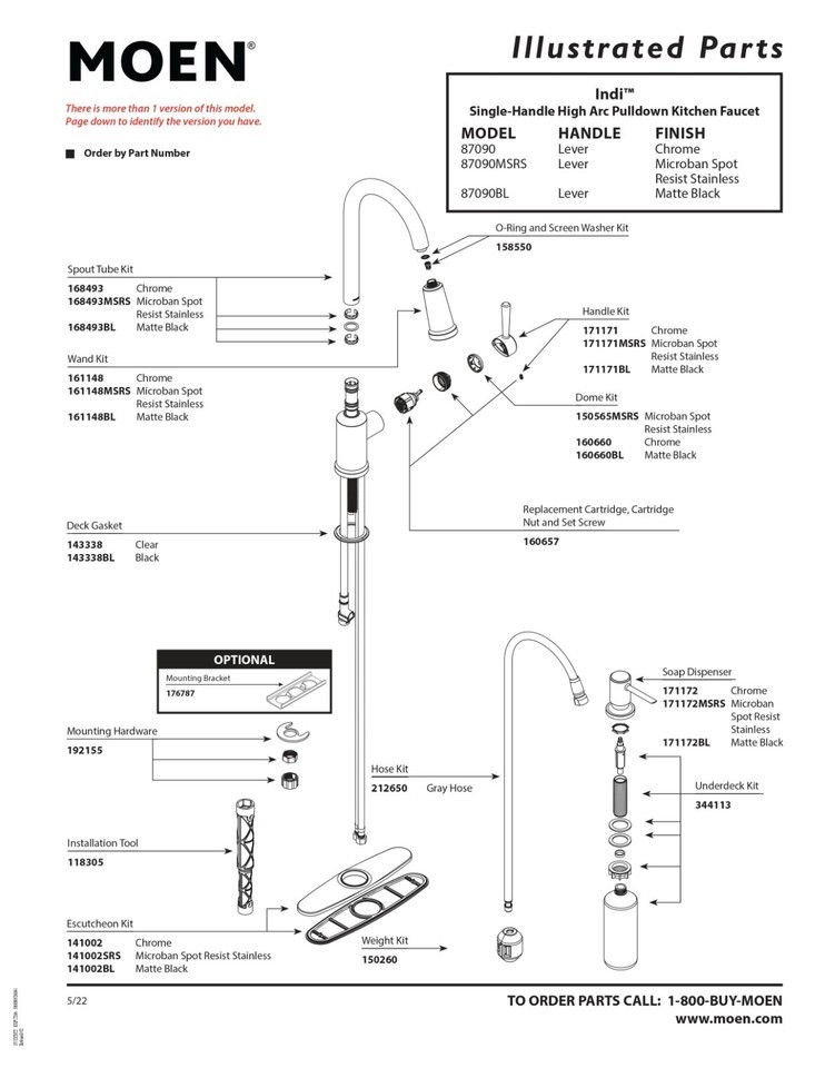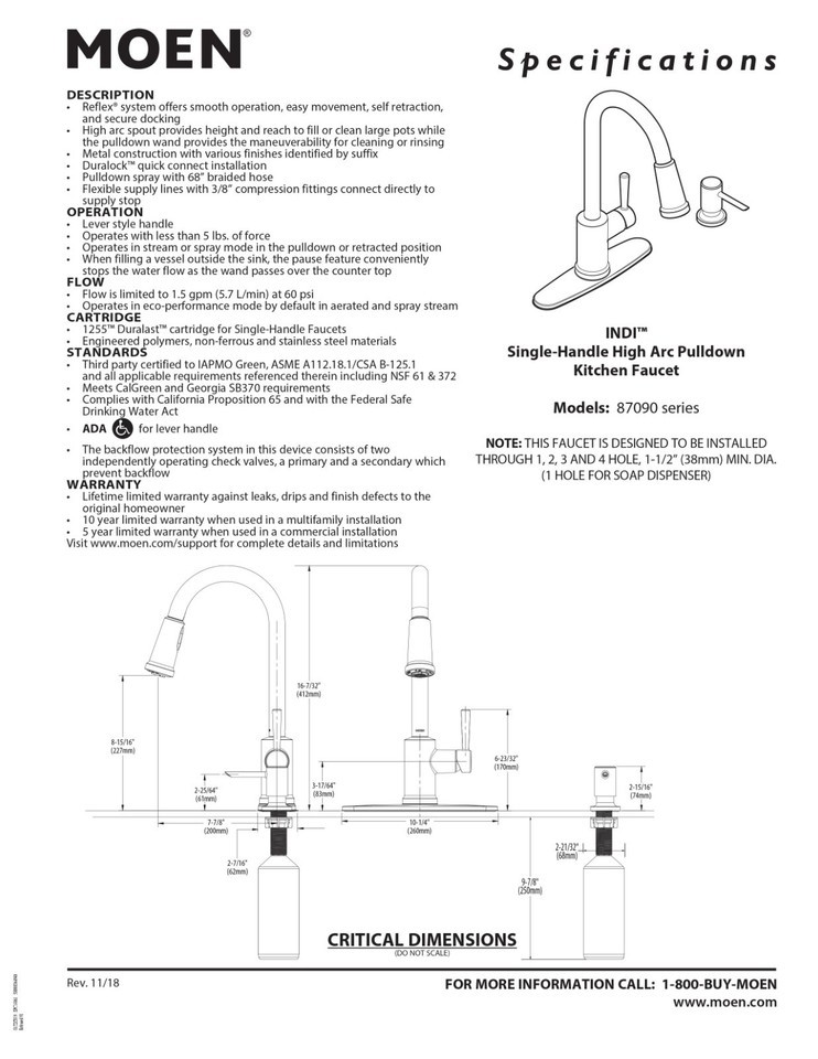 FOR CONFIRMATION OF ADDITIONAL MEASUREMENTS OR WEIGHTS PLEASE CONTACT ME or Moen
