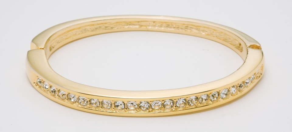 VINTAGE ROMAN GOLD HINGED BANGLE BRACELET GENUINE 23 CRYSTAL DIAMONDS +BOX SZ 7