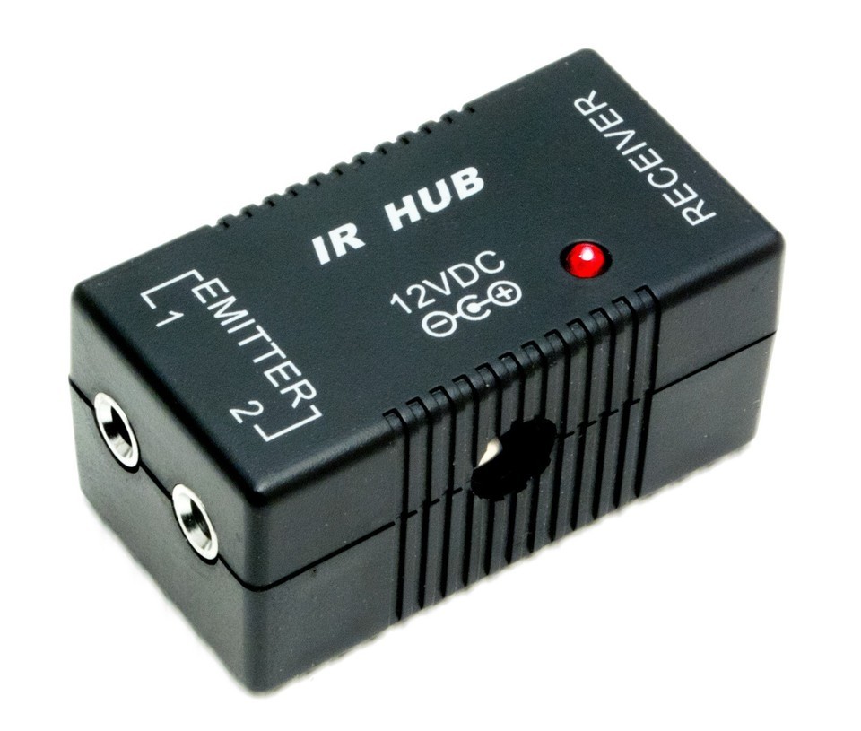 IR connecting block: Connecting block provides a place for connecting the IR receivers, emitters, and their respective power requirements. This device supports one IR receiver which is included. Connecting block supports up to two dual emitters (1 included), which connect into the unit via 3.5 mm mono phone jacks. The Main System Unit, which is the "heart" of an IR extender system, has LED indicator to monitor the IR system. Most installations call for the connecting block to be located close to the emitters and the supported components, such as: within a stereo cabinet or hidden out-of-sight in a closet.
